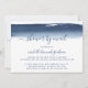 Chá de fraldas de garoto moderno e criativo por convite por e-mail para quando você não pode se encontrar pessoalmente. Um design simples com um pincel azul de marinho com barra de cor d'água na parte superior, sobre um fundo branco junto com o título do evento, "Chá por email" sobrepondo-se ao pincelada em uma fonte manuscrita com pinceladas. A parte de trás é um azul marinho sólido. Estes convites únicos são excelente de uma futura mãe artística.