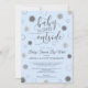 Chá de fraldas por email com um convite de cintilação prateada BABY ITS COVID FORA do script typografia design e corona acentos em uma cor azul de fundo variável para um chá de fraldas durante o distanciamento social COVID-19 e quarentena pandêmica. Entre em contato com o designer por meio do Zazzle Chat ou makeitaboutyoustore@gmail.com se você quiser que este design seja modificado, em outro produto ou quiser coordenar itens.