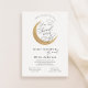 Um chá de fraldas por correio é perfeito para aqueles que não podem estar com entes queridos, mas que ainda querem chá para que a mãe esteja com amor e presentes. Este chá de longa distância por convite por correio apresenta lua com brilho dourado e roteiro divertido "Você é amado perto e longe" Personalize com suas informações ou clique em "clicar para personalizar ainda mais" para ajustar o tipo de fonte, o tamanho e a cor.