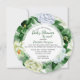 Este design moderno e moderno Chá de fraldas apresenta uma bonito aquarela de folhagem verde e flores brancas em um fundo branco ao redor de seu Chá de fraldas personalizado Por e-mail Invitation Information. Basta editar o texto nas caixas de texto fornecidas.