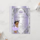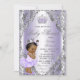 Chá de fraldas roxo e prateado com adorável menina africana vestindo um tutu roxo lavanda bonito e coroa em um fundo rodoso de lavanda e prata. Esta lavanda bonita e este convite para chás de fraldas prateados são facilmente personalizados para o seu evento simplesmente adicionando os seus detalhes de evento.