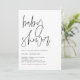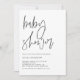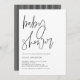 Convide convidados para o seu evento com este convite minimalista de chá de fraldas. Ele apresenta uma escrita manuscrita preta e minimalista com simples tipografia e padrão pinstripes. Personalize adicionando nomes, data, hora, local e outros detalhes. Este simples convite para bebê de script está disponível em outro estoque de cartão.