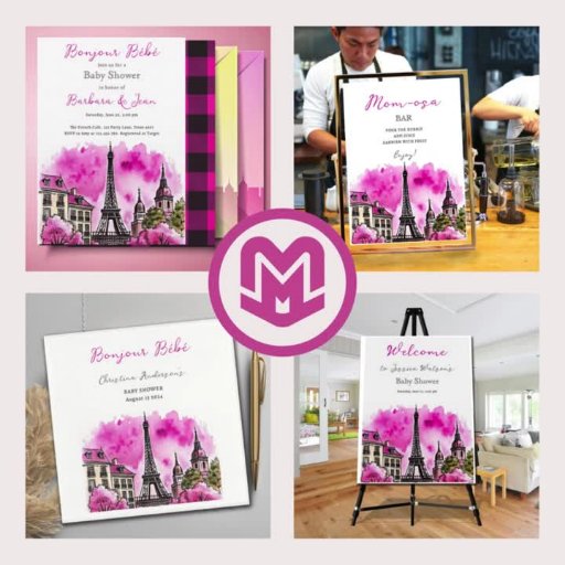 Paris French Bonjour Bebe Pink Black Baby ShowerCriado por Max Marshall