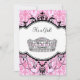 Bonito damasco cor-de-rosa com convites para chuveiros prateados e cor-de-rosa tiara e bebês pretos. Escolha o botão laranja "Personalizar!" para começar a adicionar os detalhes do evento, estilo da fonte, tamanho da fonte e cor e texto.