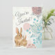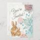 O convite para o chá de fraldas apresenta um coelho mãozinho. Eles estão sentados entre flores macios e precoces de primavera. Esta design é uma escolha excelente para raparigas e partidos neutros. ~