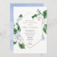 Convites chá de fraldas primavera branco azul floral dourad