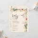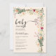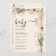 As flores silvestres do pastel boêmiano primavera chá de fraldas de verão com flores bonito do campo selvagem em boho retro laranja, vermelho, pêssego, folhas verdes, samambaia e muito mais, com uma tipografia com script escovado sobre um elegante e editável fundo de marfim bege mole.