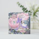 Belo calçado roxo e cor-de-rosa com uma linda menina e travesseiro com linda coroa princesa e carruagem real em um fundo elegante espalhado com bonito rosa e rosas lavandas. Você pode personalizar facilmente este convite de chá de fraldas de princesa giro para seu evento simplesmente adicionando seus detalhes no estilo de fonte, cor e texto de sua escolha.