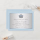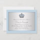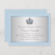 Bonito chá de fraldas azul bebê e cinza convite com coroa prateada e azul em um elegante prata e azul de bebê brilhando ao fundo. Você pode personalizar facilmente este belo convite de chá de fraldas de príncipe azul para o seu evento simplesmente adicionando seus detalhes no estilo de fonte, cor e texto de sua escolha. Este é um design impresso sem joias reais, brilho, etc.