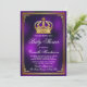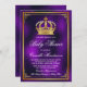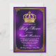 Chá de fraldas de príncipe roxo e dourado com bonito coroa roxa e coroa dourada sobre um belo fundo roxo e ouro. Você pode alterar o texto conforme necessário para o seu evento. Impressão em papel brilhante para obter melhores resultados.