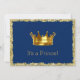 Chá de fraldas Príncipe convidado com adorável príncipe em um fundo azul real e brilhante dourado com elegante texto em estilo folha de ouro. Este adorável convite para chás de fraldas príncipe é facilmente personalizado para o seu evento adicionando os seus detalhes no estilo de fonte e na cor da sua escolha. Você também pode alterar a cor de fundo.