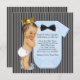 Adorável pinstripe preta, arco gravata preta e azul pequeno convite para chá de fraldas príncipe. Este príncipe bonito vestindo um belo convite de chá de fraldas preto e azul da coroa dourada é facilmente personalizado para o seu evento adicionando detalhes do evento, estilo da fonte, tamanho da fonte e cor e texto.