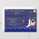Um adorável, azul, convite mostrando estrelas, e um bonitinho, gordinho, pug de desenho dormindo. O cachorro está sob um cobertor azul, com estrelas e luas sobre ele. Muito fofo. Excelente para aqueles que amam temas de estrelas e luas, a cor azul, cães, animais de estimação, ou qualquer coisa kawaii.