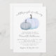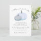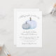 Um Pequeno Pumpkin Está A Caminho - O Convite Ao Chá de fraldas Fall Celebra a chegada com este doce e simples convite ao chá de fraldas, perfeito para um rapaz e ideal para uma reunião de outono ou outono. No topo, a frase "A Little Pumpkin Is On The Way" é escrita em fontes de cinza usando uma mistura de roteiro manuscrito e estilos de serifa clássicos para um olhar suave e elegante. O design apresenta duas abóboras em tons macios de azul perto do fundo, mantendo as coisas mínimas e doces sem salpicos ou sobreposições extras. Um fundo branco limpo mantém a aparência geral simples e moderna, enquanto os detalhes do evento são claramente organizados sob a trabalho de arte na coordenação de fontes de cinza. Este convite é totalmente personalizável — você pode alterar o texto, as fontes e o layout para ajustado perfeitamente o evento. Uma escolha encantadora para um chá de bebê durante a temporada de outono, mas suave e doce o suficiente para trabalhar a qualquer hora do ano. Disponível como um convite impresso ou um ficheiro digital transferível para correio eletrônico ou impressão localmente.