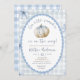 Blue Quirky Gingham Pumpkin Chá de fraldas Invitation, Nosso Pequeno Pumpkin Está No Caminho Do Chá de fraldas, Chá de fraldas De Queda Editável