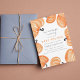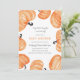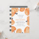 Convite para chá de fraldas temático do Halloween, com uma design de abóbora pintada por Shelby Allison, cor laranja e laranja esbranquiçada.