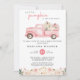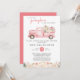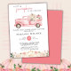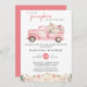 Um caminhão cor-de-rosa, um chá de fraldas fofo de abóbora e um convite para chás de fraldas. Personalize nomes, datas e informações.