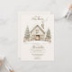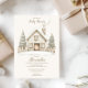 Celebre a chegada de um pequeno com este design de inverno aconchegante. Uma charmosa casota pintada à mão com uma lareira brilhante situada entre os pinheiros cobertos de neve, criando um cenário pacífico de floresta. Os tons suaves e a estética nórdica mínima trazem calor e elegância rústica à sua celebração sazonal.
