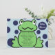 Sapo verde divertido com bastante espaço na barriga dele para todos os detalhes do seu chá de fraldas. Personalize com seu próprio texto.