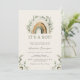 É um menino! Convite ao Chá de fraldas Rainbow Boy. Apresentamos a nossa Encantadora Coleção de Chás de fraldas Boho Rainbow, onde arco-íris, pintados à mão, de cor branca, em tons sujos de verde-sábio, terracota, e dança bronzeada ao lado de botânicos de eucalipto de tendências em um pano de fundo bege sereno, com um padrão complementar no reverso em senso profundo. Abraçando uma estética cômica rústica e boêmica, esta coleção engloba tudo o que você precisa para uma celebração memorável, desde convites refinados e cartões de cerimônia a um encantador sinal de boas-vindas, deliciosos etiquetas de presentes, bolsas de favorecimento e até mesmo coordenação de pratos de papel, copos e guardanapos. Deixe esta coleção dar a palco de uma reunião alegre e na moda para celebrar a chegada iminente da sua pequena.