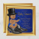 Real azul e ouro O pequeno banho de bebezinho étnico com adoráveis menininhos étnicos africanos vestindo uma fralda preta, chapéu superior e gravata arco sentados em um par de calçados masculinos em um lindo fundo azul e ouro real. Estes adoráveis convites para bebês de homem pequeno são facilmente personalizados para o seu evento simplesmente adicionando os seus detalhes no estilo de letra e na redação da sua escolha. Você também pode remover o plano de fundo e adicionar sua própria cor de fundo. Este é um design impresso sem brilho real, ouro, diamantes, etc.