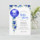 Convites Chá de fraldas Real Azul Floral Balão-Branco Moder