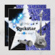 Adorável convite de chá de um menino negro, prateado e azul-real, zebra-estrela-rockstar. Adicione seus detalhes à parte frontal e traseira deste convite de chá de fraldas azul giro para estrela-de-foguete, adicionando seus detalhes de evento, estilo de fonte, tamanho e cor de fonte e texto.