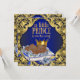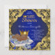 O chá de fraldas real, azul e dourado, da etnia príncipe, com adorável menino bebê com coroa dourada numa cama de rosas azuis e travesseiro num belo fundo azul real e espiral dourada. Este convite ao chá de fraldas de príncipe afro-americano, azul e dourado, é facilmente personalizado para o seu evento, adicionando os seus detalhes no estilo de letra, cor e texto da sua escolha.