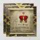 Pergaminho de ouro elegante convite para chá de preto vermelho e coroa dourado e príncipe bebê.