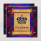 Pergaminho de ouro elegante, vermelho e azul coroa de ouro, o convite para o chá do bebê príncipe.