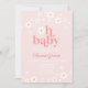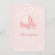 O convite à margarida e ao chá de fraldas rosa inspirado na versão retrorreflectora com margaridas do estilo 70 e fontes e cores de vaivém.