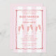 Convite para Chás de fraldas de Brunch e Bubble - Borda de Vintage Vermelha com Stripes Rosa Convide seus entes queridos a chá da mãe para ser com amor, riso e um toque de brilho! Este elegante convite para o chá de fraldas apresenta uma encantadora fronteira vermelha vintage emparelhada com listras cor-de-rosa suave — definindo perfeitamente o tom para uma sofisticada celebração Brunch & Bubble. Com o seu design eterno e talento moderno, este convite é ideal para um encontro de na moda cheio de mimosas, doces e desejos quentes. Totalmente personalizável com os detalhes do evento, este convite é a primeira impressão perfeita para um dia se lembrar.