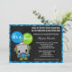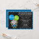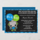 Possui um bebê ROBOT em um fundo de quadro. A borda está em diferentes tons de foguetes AZUL. Apresenta o tema de cores AZUL e VERDE. Este convite é perfeito para um MENINO. Os balões mostram "É um rapaz!". Um tema maravilhoso, perfeito para o GAROTO.