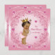 Meninas étnicas elegante, cor-de-rosa, pequena princesa adoram corações convites para chuveiros de bebês - perfeitos para um chá de fraldas ou qualquer outra época do ano - com uma bela ilustração vintage de uma linda e adorável menina africana-americana com uma coroa na moda-ouro Princesa, brincos de pérola e colar, uma fralda rosa bonito e um arco rosa em seu cabelo em um fundo rosa chico y, as espirais de ornamentado e floresce fronteiras e as joias de granja rosa-faíscas amam corações com faíscas. Bonita, romântica, caprichosa, moda, glamourosa, feminina, divertida, divertida, Chá de fraldas de barato convidada para seus chás temáticos da Princesa. Impressão frente e verso. Se precisar de assistência para personalizar seu produto, entre em contato comigo através da minha loja e eu ficarei feliz em ajudar. Original artwork©delightful-doodles.com. NOTA: - Estes são gráficos impressos em formato plano - não joias reais.