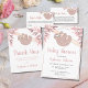 O convite para o chá de fraldas desta menina é decorado com uma bela preguiça-de-ouro-rosa-reluzente rodeada por folhas de aquarelas em tons de rosa. Personalize o convite de chá de fraldas desta doce menina com seu nome e detalhes. Original Watercolor © Michele Davies.