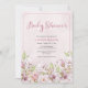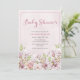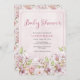 Adorável convite para Chás de fraldas florais cor-de-rosa com um fundo floral padronizado. © Mini Moi Impressões