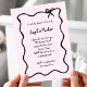 Este convite de chá de fraldas estilo chic e elegante de coquete apresenta um quadro ilustrado, desenhado com uma mão preta, ondulado, com um arco e um roteiro manuscrito na moda em um fundo cor-de-rosa pincelado para um chá de fraldas feminino estilo parisiense ou francês.
