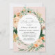 Lindos convites para bebês com um elegante tom pastel neutro e neutro molhado de cor aquática quadro floral botânico em tons suaves de pêssego, laranja, pincel suave, amarelos e muitos tons de verde de sábio verde a verdes brilhantes e profundos. Seus detalhes personalizados são exibidos em um elevado layout tipográfico que coloca o convidado de honra em frente e no centro.