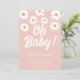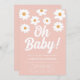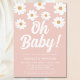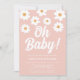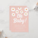 Você está planejando um chá de fraldas de menina? Este bonito convite para chás de fraldas florais é decorado com margaridas desenhadas à mão e tipografia retrorreflectora branca na moda num fundo cor-de-rosa. Facilmente personalizável. Desenho original © Michele Davies.