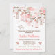Este convite para chás de fraldas bonitinho e caprichoso apresenta gaiolas e flores elegantes para pássaros, em rosa e marrom. O texto combina o script manuscrito e as fontes sans serif para uma aparência na moda e moderna. Isto é perfeito para um primavera ou chá de fraldas de verão rústico.