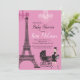 Convites Chá de fraldas rosa das garotas da Torre Eiffel de
