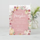 Celebre a sua abóbora com este Convite à Chá de fraldas Pumpkin Rosa de Flor Selvagem. Projetado com um fundo cor-de-rosa roxo e arborizado, moderno e elegante. O convite apresenta uma mistura encantadora de abóboras cor-de-rosa e brancas cercadas por flores silvestres brancas, folhas de outono e verde macio em tons de queda quente como mauve, rosa poeirento e ouro amarelo. Perfeito para uma menina, esta design de outono feminina junta encanto rústico e flores delicadas. Escolha ideal para um chá de fraldas de outono aconchegante e na moda. BBS1120