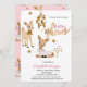 Veado de bebê em aquarela em fundo rosa.Esses convites para chuveiros de bebês são facilmente personalizados para seu evento simplesmente adicionando seus detalhes.