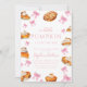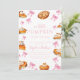 Este convite para queridos captura a combinação perfeita do calor do outono e da doçura feminina. Lindas ilustrações de aquarela de tortas de abóbora sentam-se ao lado de fitas e arcos cor-de-rosa-sino, todas sobre uma paleta de cor suave de pincéis de pincel, cremes e neutrais quentes. A design é ideal para acolher uma garotinha, evocando um sentimento de casa, colheita, e uma celebração sincera.