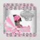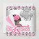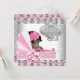 Doce carruagem rosa e adorável bebê bebezinha rosa zebra afro-americana convite para chá. Você pode personalizar facilmente este elegante convite de chá de fraldas de zebra rosa para o seu evento.