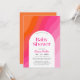 Este convite para o Chá de fraldas moderno apresenta um elegante design cor-de-rosa e laranja. com este vibrante esquema de cores de tendência de rosa quente e laranja.Um Chá de panela de verão divertido com um fundo cor-de-água rosa e laranja quente.
