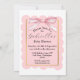 Celebre a chegada do seu pequeno com este elegante convite de chá de fraldas de bolo de água rosa e ouro! Com um belo bolo de camada pintado à mão com glacé rosa macio, delicados sotaques de ouro e um charmoso suporte de bolo com um arco, este design é sofisticado e doce. O bolo inclui o texto "é uma menina" em um roteiro de na moda, e o verso tem todos os detalhes personalizáveis em um plano de fundo rosa escalpado com borda dourada e, claro, um arco rosa. Perfeito para o chá de uma menina, este convite dá o tom para uma celebração chique e memorável. Personalize facilmente com os detalhes do evento e torne seu chá realmente especial!