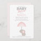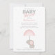 Chá de fraldas Rosa Elefante Bebê Celebra a mãe a estar com este tema de Chá de fraldas doce. Apresentando um lindo elefante bebê segurando um guarda-chuva. Design de tema perfeito para um chá de fraldas. Veja o papel de coordenação e presentes.
