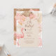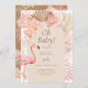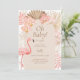 Querida! É um convite para chás de fraldas de flamingo boho rosa. Um belo convite no estilo do boho para o seu tema chá de fraldas flamingo. Um estilo elegante e moderno, com capim-pampas e palmeiras secas em tons neutros, em contraste com o talo das orquídeas cor-de-rosa e do flamingo rosa. Personalize seus detalhes fácil e rapidamente clicando no botão personalizar.