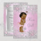 Chá de fraldas da Moça Americana Africana. Chá de fraldas de menina com pérolas cor-de-rosa doces e convite para bebê doce de inverno branco prateado. Flocos de neve de cristal de pérolas Bonito Elegante. Notem, por favor, que todas as imagens planas não têm joias ou arcos reais!